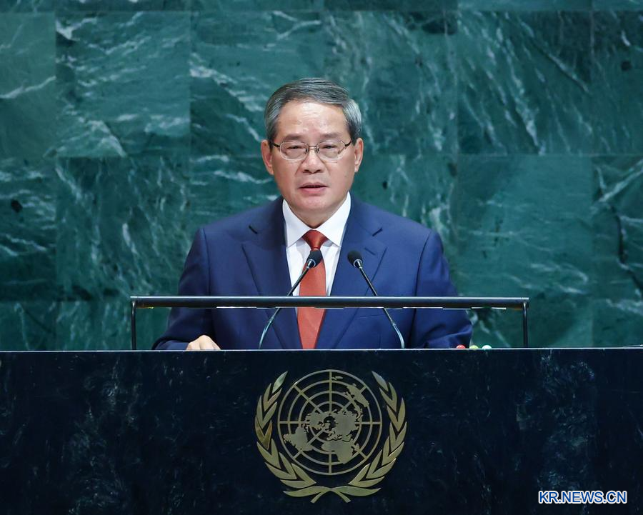 當?shù)貢r間9月26日,國務院總理李強在紐約聯(lián)合國總部出席第80屆聯(lián)合國大會一般性辯論并發(fā)表講話。