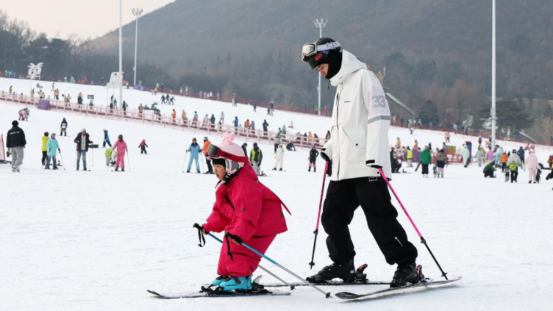 주말 맞이한 中 선양 스키장, 스키 애호가들로 '북적'