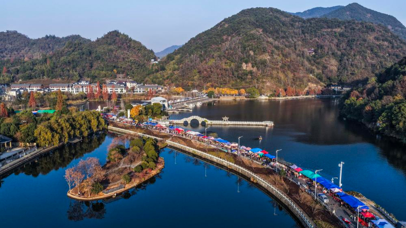 中 저장, 강변 산책로 따라 늘어선 농촌 장터
